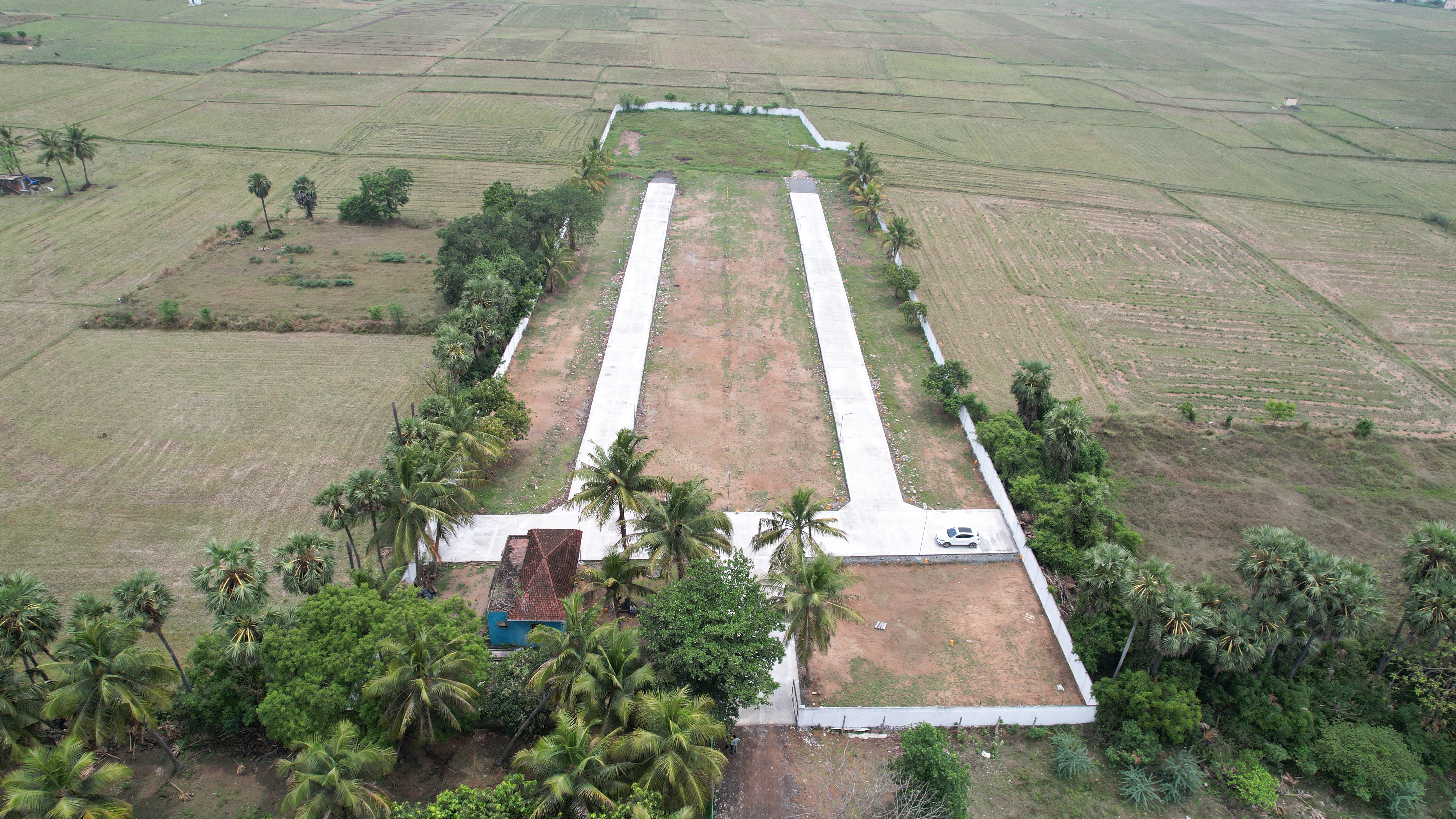 Entrance gate of Varam Sampoorna plots near Selaiyur and Bharath University Wide internal road with villa plots at Varam Sampoorna Tambaram Concrete internal roads with flagged plots at Varam Sampoorna East Tambaram CMDA approved corner villa plot for sale at Varam Sampoorna East Tambaram CMDA approved plots for sale at Varam Sampoorna Agaramthen Street view of Varam Sampoorna gated community plots in East Tambaram Rear view of CMDA approved plots at Varam Sampoorna East Tambaram Top drone view of CMDA approved residential plots at Varam Sampoorna East Tambaram